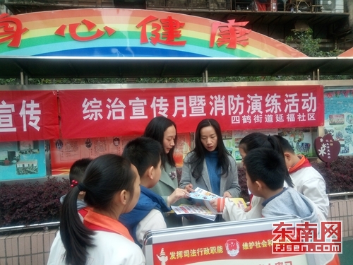 演練結束后,平安志愿者們通過宣傳單、宣傳圖板的形式向學生普及消防安全、交通安全、食品安全、掃黑除惡、禁毒、反邪教、反恐防暴、未成年人保護法等各項知識,提高學生的法律與安全意識。