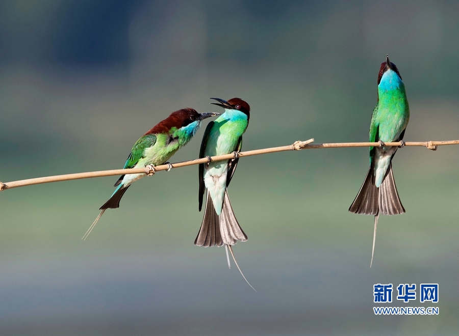 6月11日,福建省南平市延平區爐下鎮斜溪村,兩只藍喉蜂虎的“戰爭”開始了。新華社記者 梅永存 攝