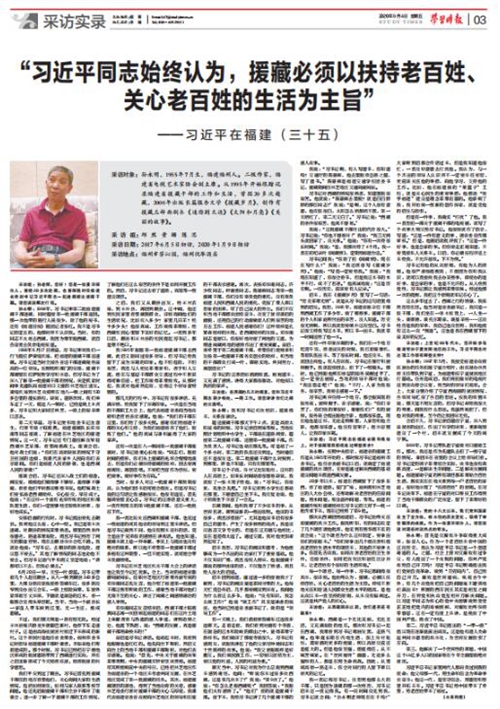 采訪對(duì)象:孫永明,1955年7月生,福建福州人。二級(jí)作家,福建省電視藝術(shù)家協(xié)會(huì)副主席。從1995年開(kāi)始跟蹤記錄福建省援藏干部的工作和生活,曾經(jīng)20多次赴藏,2000年出版長(zhǎng)篇報(bào)告文學(xué)《援藏歲月》,創(chuàng)作有援藏三部曲劇本《追你到天邊》《太陽(yáng)和月亮》《美麗的故事》。 采 訪 組:邱 然 黃 珊 陳 思 采訪日期:2017年6月5日初訪,2020年1月9日核訪 采訪地點(diǎn):福州市芳沁園,福州悅?cè)A酒店 采訪組:孫老師,您好!您是一位資深媒體人,曾經(jīng)20多次赴藏,也曾跟隨時(shí)任福建省委副書(shū)記習(xí)近平同志一起進(jìn)藏接送援藏干部。請(qǐng)您談?wù)勀谴涡谐獭?/span> 孫永明:1998年,習(xí)書(shū)記率第二批福建援藏干部進(jìn)藏,同時(shí)迎接第一批援藏干部返回。那一次他帶的隨行人員很少,除了他的秘書(shū),還有《福建日?qǐng)?bào)》隨團(tuán)記者張紅。我不是習(xí)書(shū)記指定去的,他那時(shí)并不認(rèn)識(shí)我。當(dāng)時(shí),有的同志不太敢去西藏,我因?yàn)槌D昱芪鞑兀妥愿鎶^勇去負(fù)責(zé)電視報(bào)道。 1998年6月17日清晨,習(xí)書(shū)記率領(lǐng)我們一行飛抵拉薩貢嘎機(jī)場(chǎng),把福建的援藏干部送進(jìn)藏。習(xí)書(shū)記是當(dāng)時(shí)全國(guó)各省送干部進(jìn)藏規(guī)格最高的一位領(lǐng)導(dǎo)。按照組織部門的安排,援藏干部須留在拉薩短暫學(xué)習(xí)和休息,但習(xí)書(shū)記為了深入了解第一批援藏干部的情況,決定抓緊時(shí)間率先遣隊(duì)向福建對(duì)口支援的林芝地區(qū)進(jìn)發(fā)。貢嘎機(jī)場(chǎng)到林芝政府所在地八一鎮(zhèn)之間有530多公里的漫長(zhǎng)路程,缺氧、道路坎坷,我們乘車走了一天,抵達(dá)八一鎮(zhèn)時(shí),已經(jīng)是晚上8點(diǎn)多,習(xí)書(shū)記和大家同甘共苦,一路上的艱辛難以言表。 第二天早晨,習(xí)書(shū)記便和地委書(shū)記金喜生、行署專員才旺班典、福建援藏隊(duì)長(zhǎng)鄧保南等同志座談,了解福建在林芝地區(qū)的援建情況。這一天,習(xí)書(shū)記還專門前往解放軍駐西藏林芝某部,看望閩籍戰(zhàn)士。座談會(huì)后,他對(duì)戰(zhàn)士們說(shuō):“你們?cè)诟咴毖醯那闆r下守衛(wèi)祖國(guó)的邊疆,我謹(jǐn)代表家鄉(xiāng)人民向你們表示慰問(wèn)。你們是福建人民的驕傲,也是西藏人民的驕傲!” 座談會(huì)后,習(xí)書(shū)記還深入戰(zhàn)士們的宿舍、閱覽室,摸摸他們鋪得夠不夠厚,蓋得夠不夠暖,看看他們平時(shí)都讀哪些書(shū)報(bào)。他叮囑戰(zhàn)士們要弘揚(yáng)老西藏精神,安心服役,早日成才。他說(shuō):“在這樣一個(gè)富有光榮傳統(tǒng)的地區(qū)和部隊(duì)里生活,你們一定能夠經(jīng)受鍛煉和磨難,很好地成長(zhǎng)。” 安排后面的行程時(shí),習(xí)書(shū)記提出要先去朗縣。我聽(tīng)他這么說(shuō),心中一驚。我已是第9次進(jìn)藏,對(duì)朗縣的情況非常熟悉。那里自然條件很惡劣,路途非常艱險(xiǎn),而且習(xí)書(shū)記經(jīng)歷了兩天的旅途勞頓,現(xiàn)在去朗縣身體會(huì)吃不消。我就勸他說(shuō):“習(xí)書(shū)記,去朗縣的路很危險(xiǎn),建議您不要去。”其他了解情況的同志也勸他不要去。但習(xí)書(shū)記語(yǔ)氣平和而又堅(jiān)定地說(shuō):“誰(shuí)都可以不去,但我必須去。” 6月20日一早,天空一片蔚藍(lán)。習(xí)書(shū)記帶著幾個(gè)人趕往朗縣。從八一鎮(zhèn)到朗縣340多公里,大部分路段緊挨著雅魯藏布江,很多路段窄到?jīng)]辦法交會(huì)車,一路上驚險(xiǎn)異常,車窗外緊鄰著萬(wàn)丈深淵,下面就是湍急的江水,看一眼都會(huì)覺(jué)得頭暈?zāi)垦!.?dāng)年,當(dāng)?shù)匾粋€(gè)副縣長(zhǎng)一家連人帶車掉到江里,無(wú)一生還,釀成悲劇。 不過(guò),我們那天倒是一路有驚無(wú)險(xiǎn)。經(jīng)過(guò)米林縣境內(nèi)臥龍鄉(xiāng)唐崩巴新村,他停下車走進(jìn)村子。這是由高海拔貧困村搬遷下來(lái)形成的新村。這個(gè)移民村是他任省委常委、福州市委書(shū)記時(shí)指導(dǎo)福建援藏干部葉康勇、李振泰他們幫著建成的。那個(gè)時(shí)候,習(xí)書(shū)記已經(jīng)把在寧德地區(qū)形成的脫貧思路帶到了西藏進(jìn)行實(shí)踐,并在之后逐漸形成了今天精準(zhǔn)扶貧、精準(zhǔn)脫貧的科學(xué)思想。 我們平安到達(dá)了朗縣。習(xí)書(shū)記首先到援藏干部住的地方看望他們,關(guān)心詢問(wèn)大家的生活情況,包括如何做飯、如何與家人聯(lián)系等細(xì)節(jié)問(wèn)題。他還先后跟援藏干部和全縣干部開(kāi)了座談會(huì),進(jìn)一步了解一下援藏干部的工作情況,了解他們?cè)谶@么艱苦的條件下是如何開(kāi)展工作的。然后,習(xí)書(shū)記還去看了道路、賓館等一些建設(shè)項(xiàng)目。 之后,我們又從朗縣出發(fā),經(jīng)米林農(nóng)場(chǎng),到米林縣,再回到朗縣。這中間,他還到牧民家里看望藏族群眾,詳細(xì)詢問(wèn)他們的生活狀況,比如收入多少?家里幾只羊?牦牛多少頭?他很真誠(chéng),工作做得非常細(xì),給西藏牧民心里留下美好的記憶。一直到多年以后,朗縣和米林縣的牧民提起習(xí)書(shū)記,都是贊不絕口。 我1995年跟隨第一批福建援藏干部去西藏,此后又陪同過(guò)很多領(lǐng)導(dǎo),但習(x