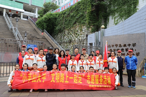 參加活動的孩子和黨員志愿者合影 洪志明/攝 通過此次活動,引導孩子們走出校園,把文明帶進家庭、帶進社會,實現“教育一個學生,帶動一個家庭,影響一個社區,文明整個社會”,形成人人參與環境整治的生動局面。(洪志明 文/圖) |