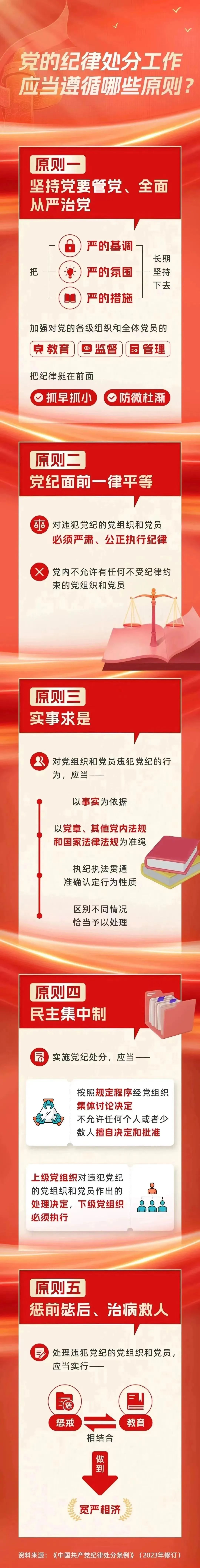 習近平總書記在二十屆中央紀委三次全會上要求,以學習貫徹新修訂的《中國共產黨紀律處分條例》為契機,在全黨開展一次集中性紀律教育。開展黨紀學習教育,是加強黨的紀律建設、推動全面從嚴治黨向縱深發展的重要舉措。近日,中共中央辦公廳印發《關于在全黨開展黨紀學習教育的通知》指出,為深入學習貫徹修訂后的《中國共產黨紀律處分條例》,經黨中央同意,自2024年4月至7月,在全黨開展黨紀學習教育。 為推動黨紀學習教育走深走實,營造良好輿論氛圍,引導學生黨員進一步學紀、知紀、明紀、守紀,學工君為鮮橙們帶來“黨紀學習教育”專欄。讓我們一起走進專欄,學條例、守黨紀,做到知行知止、令行禁止。 本期,學工君帶領大家從三個方面繼續深入了解《中國共產黨紀律處分條例》。 抓好黨紀學習教育, 總書記這樣說! 為什么要反復強調黨紀學習教育? 黨紀學習教育又有哪些要點? 讓我們一起來聽聽 習近平總書記的指示 黨的紀律處分工作遵循哪些原則? 黨紀處分分為哪幾種類型? 讓我們一起來學習! 黨的紀律處分工作遵循的原則 黨紀處分有幾種? 讓我們堅持黨紀學習教育,錘煉黨性修養,筑牢思想防線,不斷提升自己的思想覺悟和政治理論水平,用堅定的理想信念照亮奮進之路,為實現中華民族偉大復興的中國夢貢獻青春力量! |