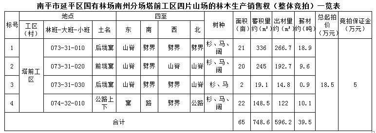 南平市延平區國有林場南州分場塔前工區四片山場的林木生產銷售權