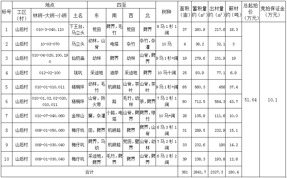 南平市延平區(qū)山后村10片山場林木生產(chǎn)銷售權(quán)(整體競拍)