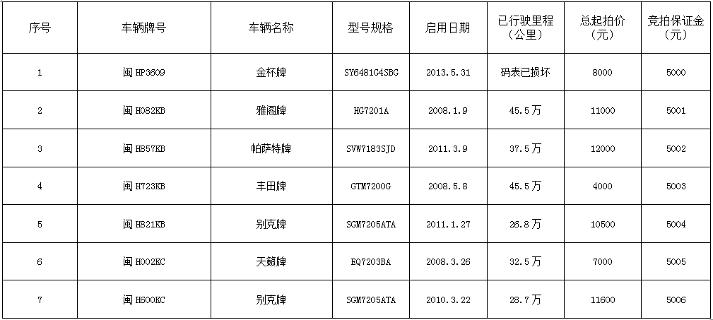 受委托,定于2024年11月13日上午9:00,通過延平區(qū)陽光平臺(http://ypygpt.zgpm.com/)舉行公開網(wǎng)絡(luò)競拍: 一、競拍標(biāo)的:南平市延平區(qū)七輛轎車轉(zhuǎn)讓,具體詳見下表: 南平市延平區(qū)七輛轎車轉(zhuǎn)讓一覽表 二、競拍保證金及平臺報名截止時間: 競拍保證金截止時間:具體競拍保證金詳見以上表格,于2024年11月12日下午5時前; 平臺報名截止時間:即日起至標(biāo)的開拍前半小時。 報名時憑競拍保證金繳存憑據(jù)確認(rèn)競買人資格。本次競拍除買受人應(yīng)繳納競拍傭金、軟件使用費(fèi)外不收取其他費(fèi)用,具體辦理報名、看樣、繳納競拍保證金等相關(guān)手續(xù),請有意參加競買人持有效證件與我中心聯(lián)系。 競拍保證金匯入以下指定賬戶: 戶名:南平市延平區(qū)公共資源交易中心; 賬號:9558831406000015950; 開戶行:中國工商銀行股份有限公司南平延平支行。 三、參與競拍人條件: 1、參加競拍者必須具有民事行為能力的中華人民共和國境內(nèi)的自然人、法人或其它組織。 四、展示地點(diǎn):永瑞汽車維修招標(biāo)廠。展示時間:2024年11月4日起。 五、聯(lián)系地址及詳情咨詢電話: 地址:南平市延平區(qū)公共資源交易中心(南平市延平區(qū)八一路439號南平市延平區(qū)政務(wù)服務(wù)中心4樓)。 中心聯(lián)系人:0599-8801022小張。 看樣聯(lián)系人:18150307676陳禮卿。 六、有關(guān)競拍的其他事項(xiàng)及規(guī)定詳見《競拍規(guī)則》。 微信公眾號:延平區(qū)政務(wù)服務(wù)中心公眾號。 發(fā)布競拍公告及規(guī)則的媒介:南平市公共資源交易中心延平區(qū)分中心(https://ggzy.np.gov.cn:9095/yp/)、延平區(qū)陽光平臺(http://ypygpt.zgpm.com/)、中國拍賣行業(yè)協(xié)會網(wǎng)站、延平區(qū)人民政府網(wǎng)(http://www.ypzf.gov.cn/)、延平新聞網(wǎng)。 南平市延平區(qū)公共資源交易中心 中拍平臺網(wǎng)絡(luò)科技股份有限公司 2024年11月4日 |