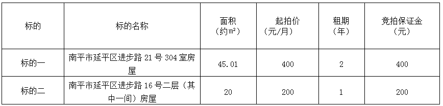 受委托,定于2024年11月14日上午9:00,通過延平區陽光平臺(http://ypygpt.zgpm.com/)舉行公開網絡競拍: 一、競拍標的:南平市延平區進步路房屋租賃權。具體標的詳情如下: 南平市延平區進步路房屋租賃權一覽表 二、競拍保證金及平臺報名截止時間: 競拍保證金截止時間:具體競拍保證金詳見以上表格,即日起至2024年11月13日下午5時前; 平臺報名截止時間:即日起至標的開拍前半小時。 報名時憑競拍保證金繳存憑據確認競租人資格。具體辦理報名、看樣、繳納競拍保證金等相關手續,請有意競租人與我中心聯系。 競拍保證金匯入以下指定賬戶: 戶名:南平市延平區公共資源交易中心; 賬號:9558831406000015950; 開戶行:中國工商銀行股份有限公司南平延平支行。 三、本次競拍標的物優先承租權:無。 四、展示地點:標的物所在地;展示時間:2024年11月4日起。 五、聯系地址及詳情咨詢電話: 中心地址:南平市延平區公共資源交易中心(南平市延平區八一路439號南平市延平區政務服務中心4樓)。 中心聯系人:0599-8801022小張。 看房聯系人:0599-8822748張女士。 六、有關競拍的其他事項及規定詳見《競拍規則》。 微信公眾號:延平區政務服務中心。 發布競拍公告及規則的媒介:南平市公共資源交易中心延平區分中心(https://ggzy.np.gov.cn:9095/yp/)、延平區陽光平臺(http://ypygpt.zgpm.com/)、中國拍賣行業協會網站、延平區人民政府網(http://www.ypzf.gov.cn/)、延平新聞網。 南平市延平區公共資源交易中心 中拍平臺網絡科技股份有限公司 2024年11月4日 |