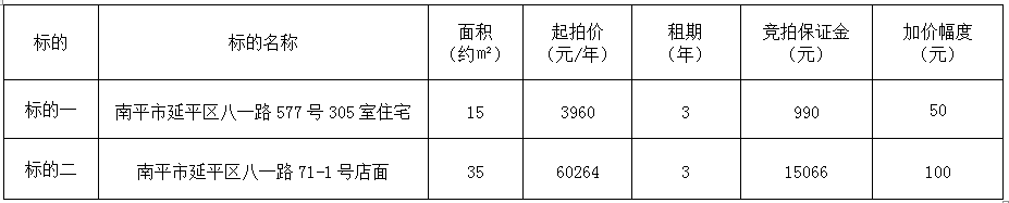 受委托,定于2024年11月26日上午9:00,通過延平區(qū)陽光平臺(http://ypygpt.zgpm.com/)舉行公開網(wǎng)絡(luò)競拍: 一、競拍標(biāo)的:南平市延平區(qū)八一路住宅(店面)三年期租賃權(quán),具體標(biāo)的詳情如下: 南平市延平區(qū)八一路住宅(店面)三年期租賃權(quán)一覽表 二、競拍保證金及平臺報(bào)名截止時(shí)間: 競拍保證金截止時(shí)間:具體競拍保證金詳見以上表格,即日起至2024年11月25日下午5時(shí)前; 平臺報(bào)名截止時(shí)間:即日起至開拍前半小時(shí)。 報(bào)名時(shí)憑競拍保證金繳存憑據(jù)確認(rèn)競租人資格。具體辦理報(bào)名、看樣、繳納競拍保證金等相關(guān)手續(xù),請有意競租人與我中心聯(lián)系。 競拍保證金匯入以下指定賬戶: 戶名:南平市延平區(qū)公共資源交易中心; 賬號:9558831406000015950; 開戶行:中國工商銀行股份有限公司南平延平支行。 三、本次競拍標(biāo)的物優(yōu)先承租權(quán):無。 四、展示地點(diǎn):標(biāo)的物所在地;展示時(shí)間:2024年11月15日起。 五、聯(lián)系地址及詳情咨詢電話: 中心地址:南平市延平區(qū)公共資源交易中心(南平市延平區(qū)八一路439號南平市延平區(qū)政務(wù)服務(wù)中心4樓)。 中心聯(lián)系人:0599-8801022小張。 看房聯(lián)系人:13860089267魏先生。 六、有關(guān)競拍的其他事項(xiàng)及規(guī)定詳見《競拍規(guī)則》。 微信公眾號:延平區(qū)政務(wù)服務(wù)中心。 發(fā)布競拍公告及規(guī)則的媒介:南平市公共資源交易中心延平區(qū)分中心(https://ggzy.np.gov.cn:9095/yp/)、延平區(qū)陽光平臺(http://ypygpt.zgpm.com/)、中國拍賣行業(yè)協(xié)會網(wǎng)站、延平區(qū)人民政府網(wǎng)(http://www.ypzf.gov.cn/)、延平新聞網(wǎng)。 南平市延平區(qū)公共資源交易中心 中拍平臺網(wǎng)絡(luò)科技股份有限公司 2024年11月15日 |