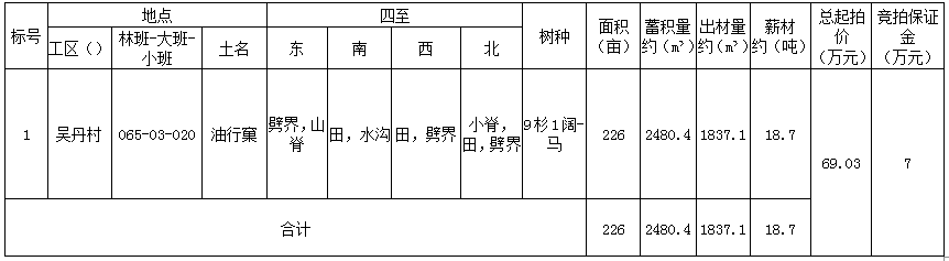 南平市延平區夏道鎮吳丹村油行窠山場的林木生產銷售權(整體競拍)