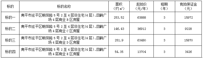 南平市延平區(qū)朝陽路5號2至4層非住宅(4層)、四鶴廣場4層商業(yè)房屋三年期租賃權(quán)