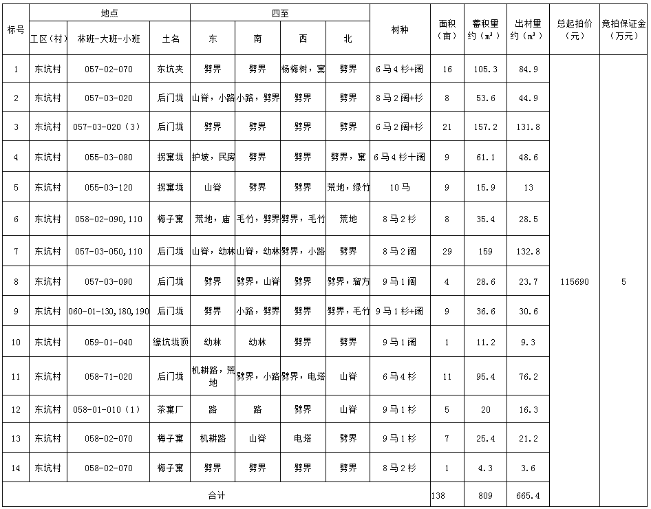 南平市延平區水南街道東坑村“東坑夾、后門垅、拐窠垅等”14片山場的林木生產銷售權(整體競拍)五次競拍