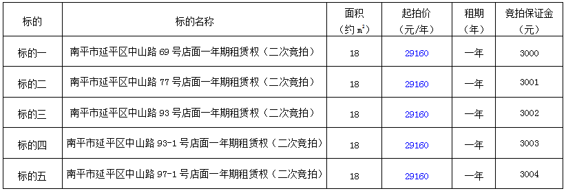 南平市延平區中山路店面一年期租賃權(二次競拍)