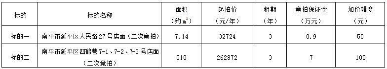 南平市延平區(qū)人民路、四鶴巷店面三年期租賃權(quán)(二次競拍)