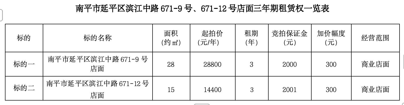 南平市延平區(qū)濱江中路671-9號(hào)、671-12號(hào)店面三年期租賃權(quán)
