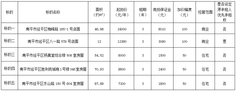 南平市延平區(qū)梅峰路、八一路、楊真堂、勝利街、東山路房屋店面三年期租賃權(quán)