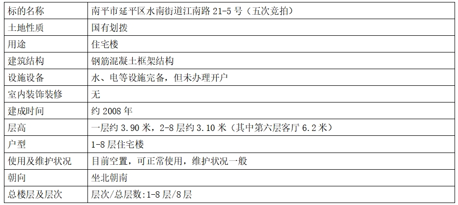 南平市延平區水南街道江南路21-5號房屋轉讓(五次競拍)