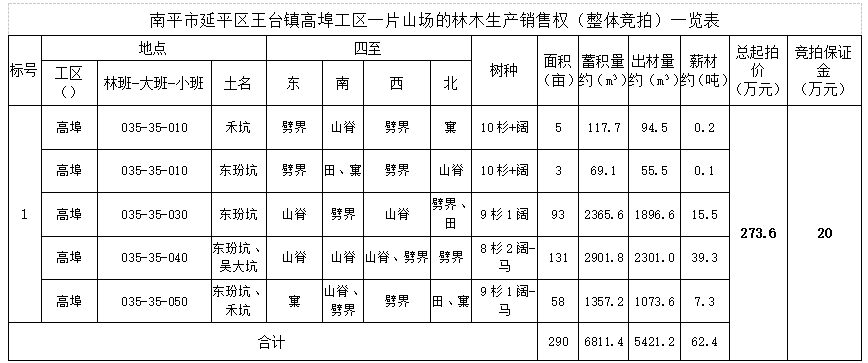 南平市延平區王臺鎮高埠工區一片山場的林木生產銷售權(整體競拍)