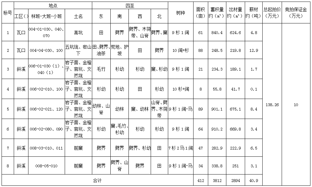 南平市延平區爐下鎮斜溪村“高坑、巖子面等”8片山場的林木生產銷售權(整體競拍)