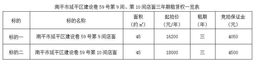 南平市延平區(qū)建設巷59號第9間、第10間店面三年期租賃權
