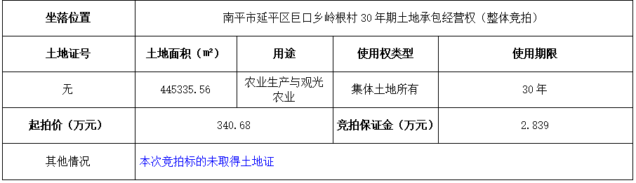 南平市延平區(qū)巨口鄉(xiāng)嶺根村30年期土地承包經(jīng)營(yíng)權(quán)(整體競(jìng)拍)