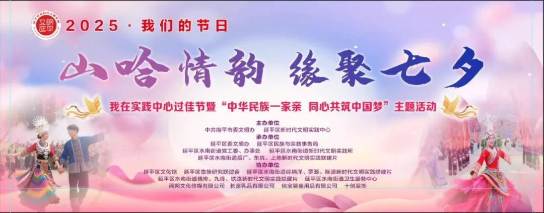 農(nóng)歷七月初七,是中華民族的傳統(tǒng)節(jié)日——七夕節(jié),為進一步弘揚中華優(yōu)秀傳統(tǒng)文化,品味傳統(tǒng)文化魅力,著力培育和踐行社會主義核心價值觀,營造民族一家親、文明和諧的節(jié)日氛圍,在七夕佳節(jié)到來之際,南平市委文明辦聯(lián)合延平區(qū)新時代文明實踐中心開展“山哈情韻 緣聚七夕”我在文明實踐中心過佳節(jié)暨“中華民族一家親 同心共筑中國夢”主題活動。 活動時間: 2025年8月29日晚上19:00 活動地點: 南平市延平區(qū)水南街道站前公園水南大舞臺 活動內(nèi)容: (一)七夕主題文藝節(jié)目展演 (二)宣傳宣講:七夕傳統(tǒng)習(xí)俗、新風(fēng)尚 (三)非遺展示:嶺炳洋畬族“梳妝技藝” (四)好家風(fēng)傳承:轄區(qū)金婚、銀婚的恩愛模范夫妻訪談 (五)有獎互動:明禮南平人、《南平市文明行為條例》、文明創(chuàng)建、民族融合、七夕習(xí)俗、移風(fēng)易俗、零彩禮低彩禮新婚尚等內(nèi)容 (六)傳統(tǒng)項目體驗:剪紙、編紅繩、射箭、刺繡、竹筒投球、竹編等。 (七)宣傳展示活動:文明實踐風(fēng)采、公益廣告、文明實踐文創(chuàng)產(chǎn)品、道德模范、新時代好少年、感動福建等先模人物事跡宣傳等。 往期精彩: |