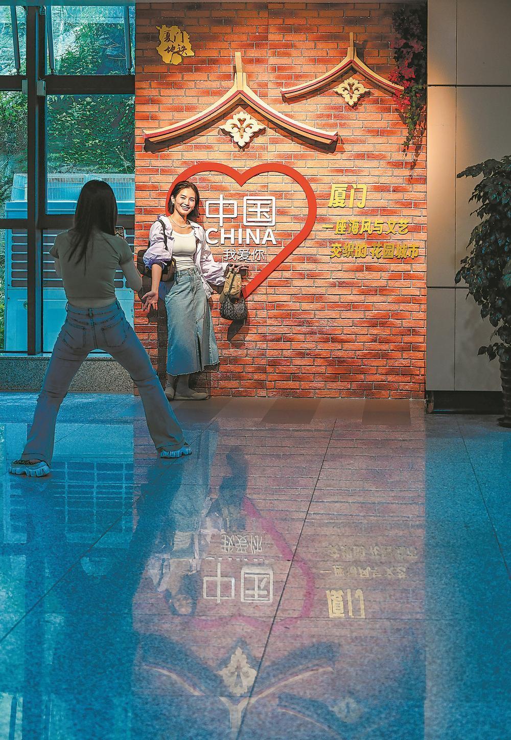 29日,福州市倉(cāng)山區(qū)教師進(jìn)修學(xué)校附屬第一小學(xué)開展“喜迎國(guó)慶 祝福祖國(guó)”主題活動(dòng),師生通過舞龍舞獅表演、列隊(duì)擺造型、與國(guó)旗合影等形式,表達(dá)對(duì)祖國(guó)的美好祝愿,喜迎國(guó)慶佳節(jié)。謝貴明 攝 國(guó)慶來(lái)臨,廈門地鐵在沿線作主題氛圍布置。圖為市民在廈門地鐵1號(hào)線的布置點(diǎn)留影。林志杰 攝 29日,邵武市大埠崗鎮(zhèn)大埠崗村洋溢著喜慶祥和的節(jié)日氣氛。“非遺匠人體驗(yàn)街區(qū)開街表演‘儺舞’”等節(jié)目輪番上演,吸引不少村民和游客駐足觀看。黃自棋 攝 |